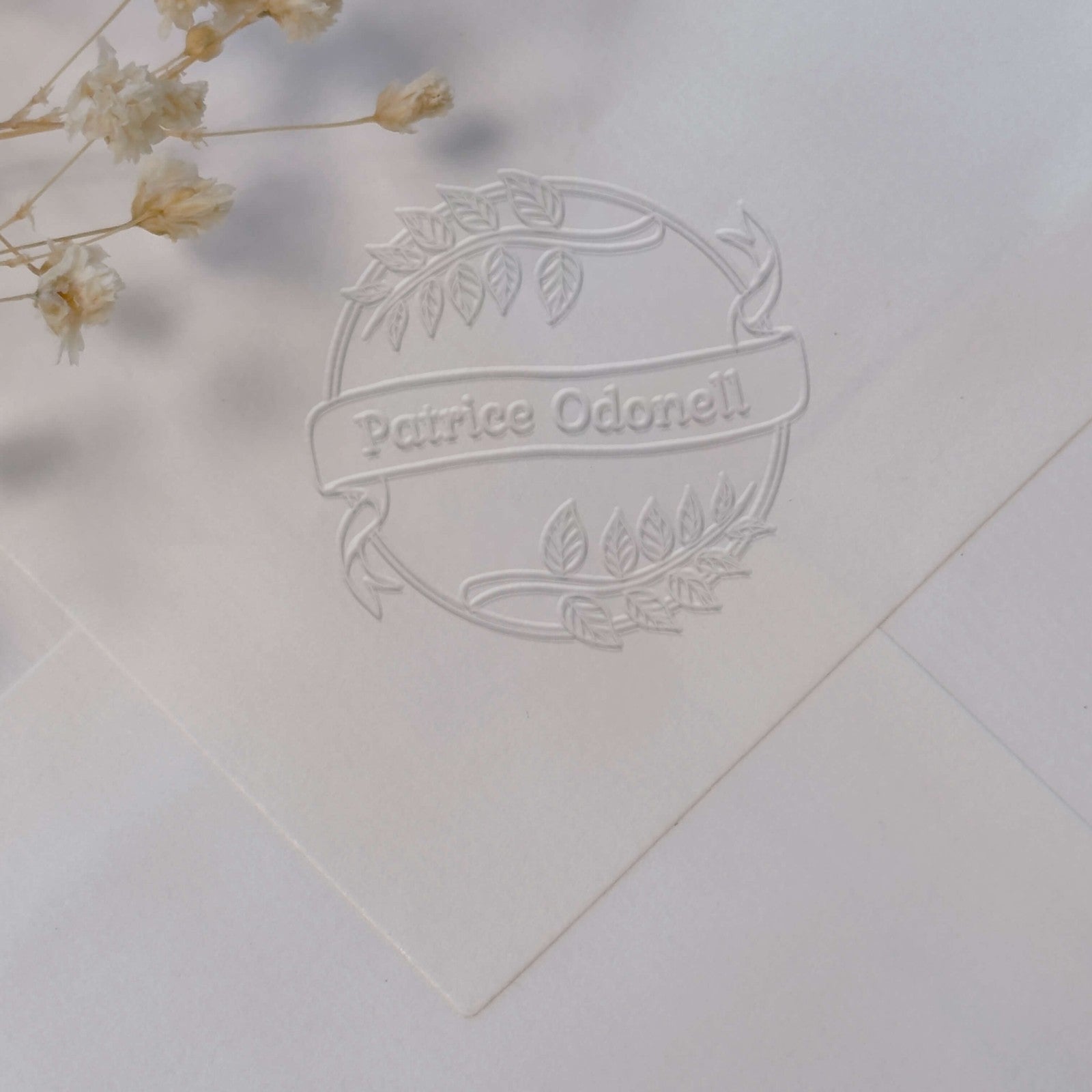 Personalize your creations with this round embossing tool featuring a refined plant design, ideal for marking correspondence and official documents.