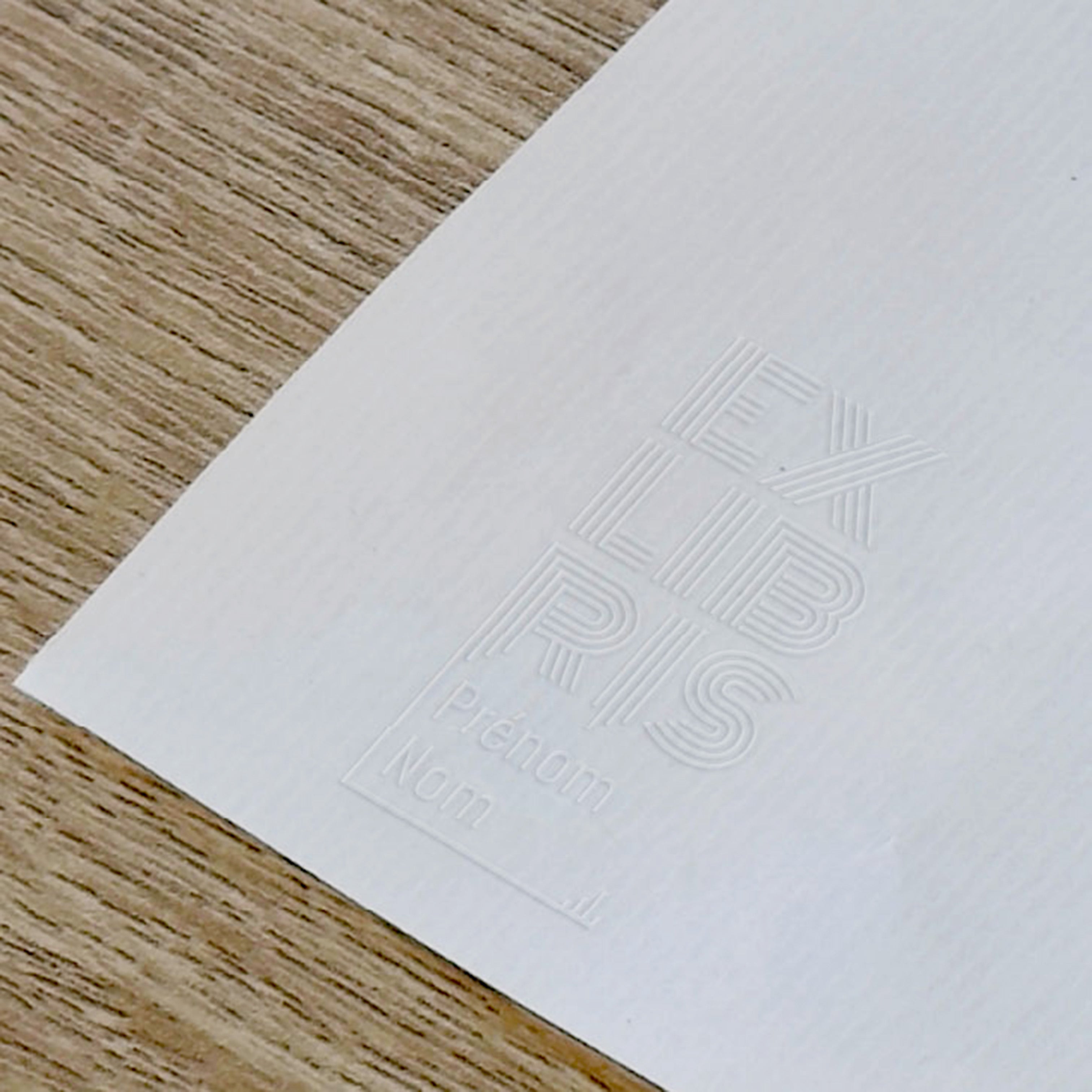 Add a distinctive touch to your documents with our 'Retro Lines Ex-Libris' embossed stamp design. Ideal for personalizing notebooks, letters, or artwork, this stamp is designed to subtly display your unique signature. The design features a pattern of parallel lines on the left side with a central frame where you can add your own text.