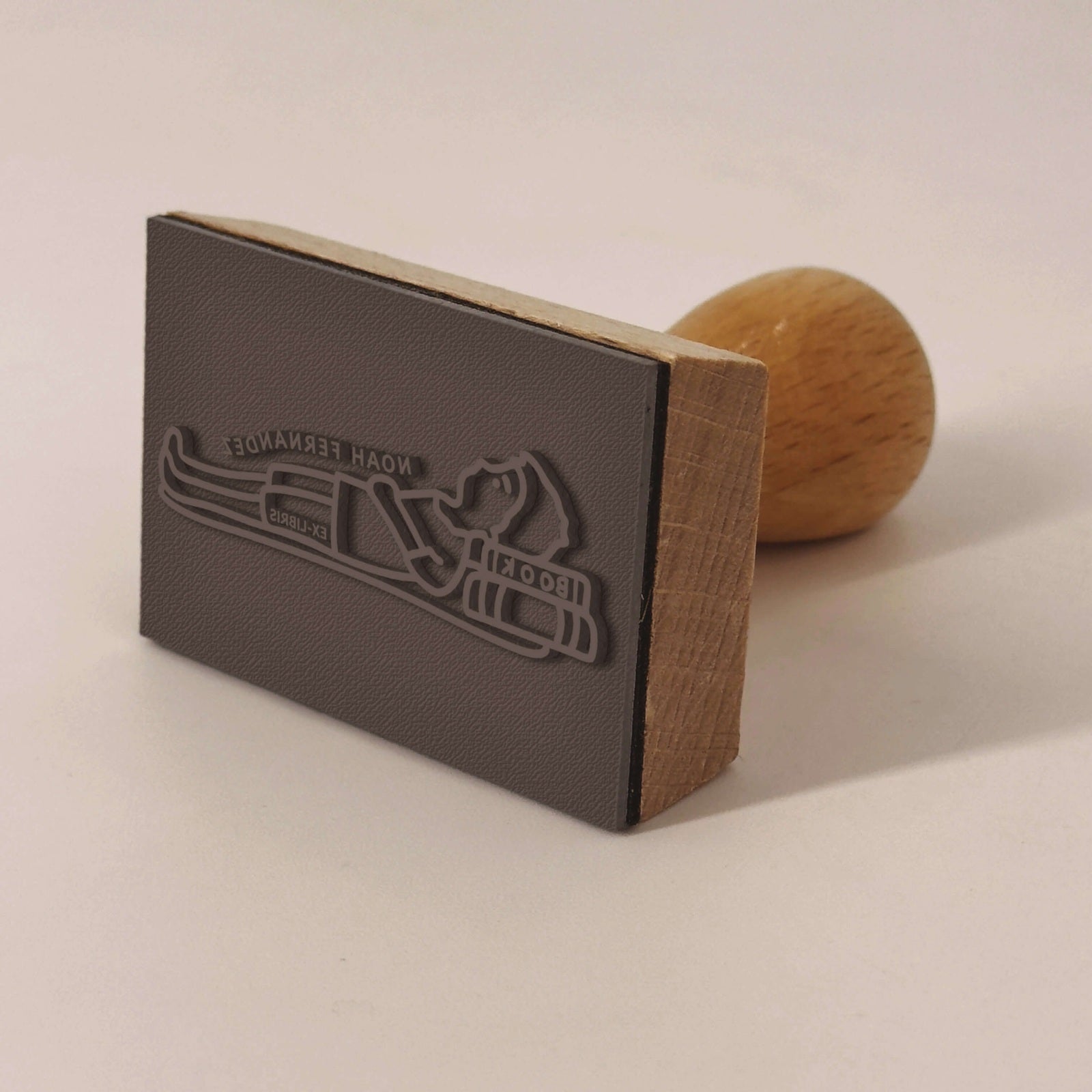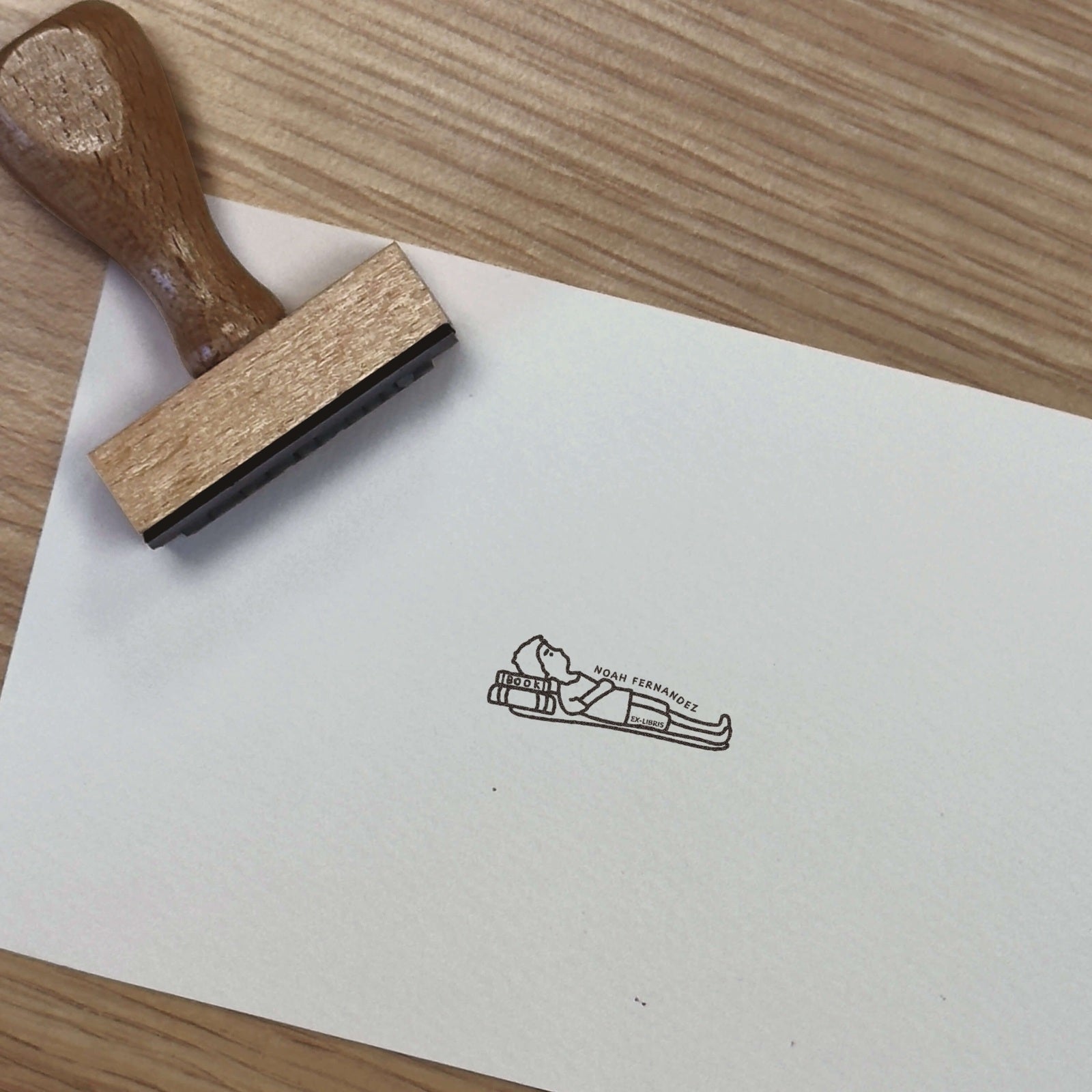 Transform your books into true personalized treasures with this bookplate stamp illustrating a peaceful reading scene.