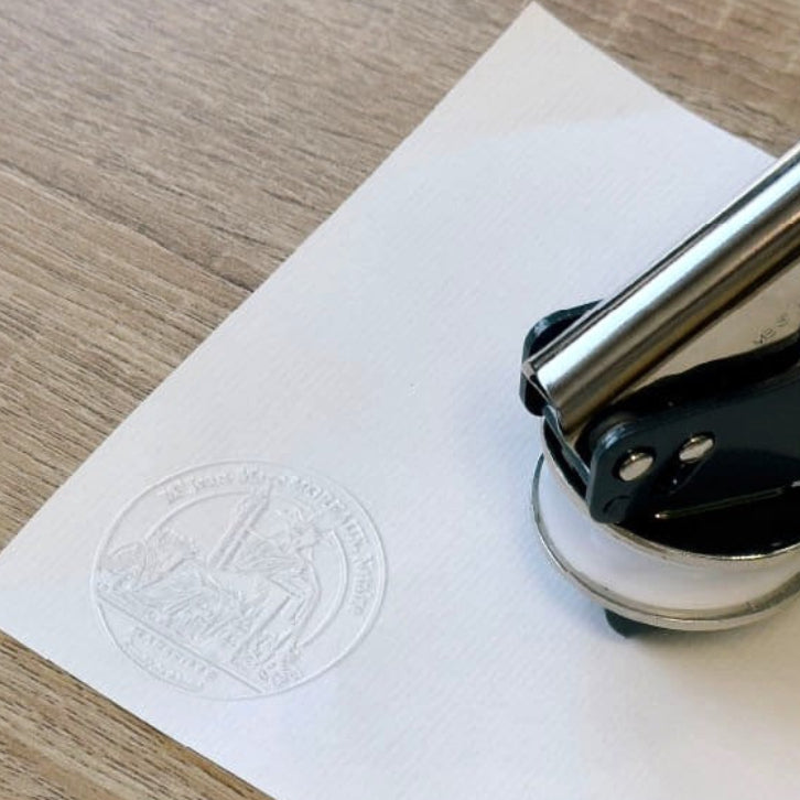 Embossed your official documents or notarial acts with a unique touch thanks to our dry stamp model entitled: Notary Embosser.