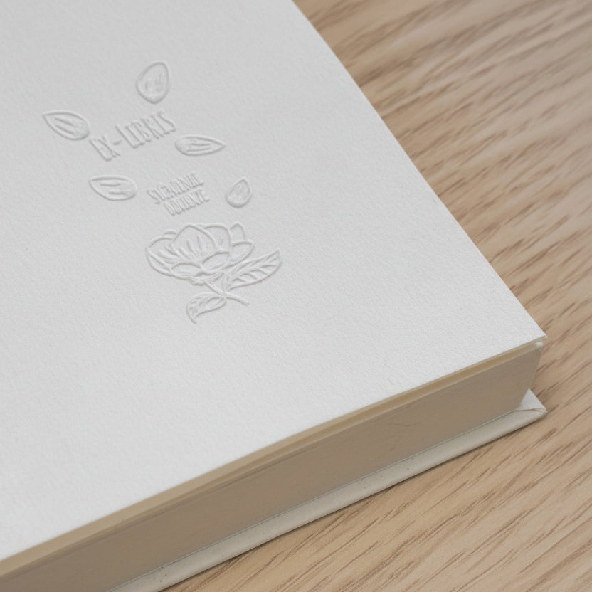 Create your bibliophile signature with this delicate rose petal bookplate design, made for your embossing pliers.