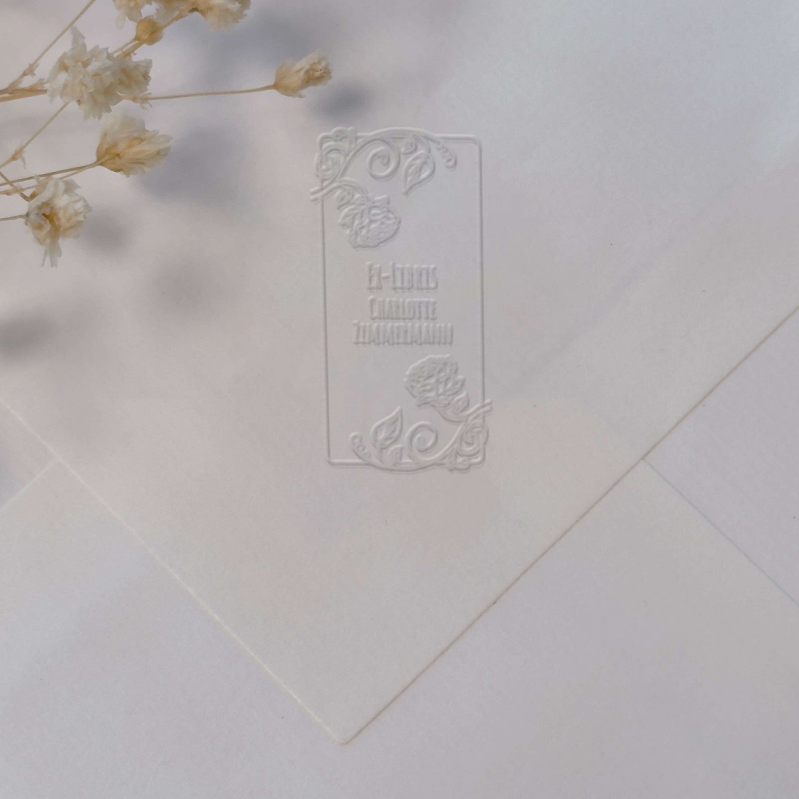 Create your personal signature with this elegant Ex-libris embossing template adorned with delicate roses and refined scrolls.
