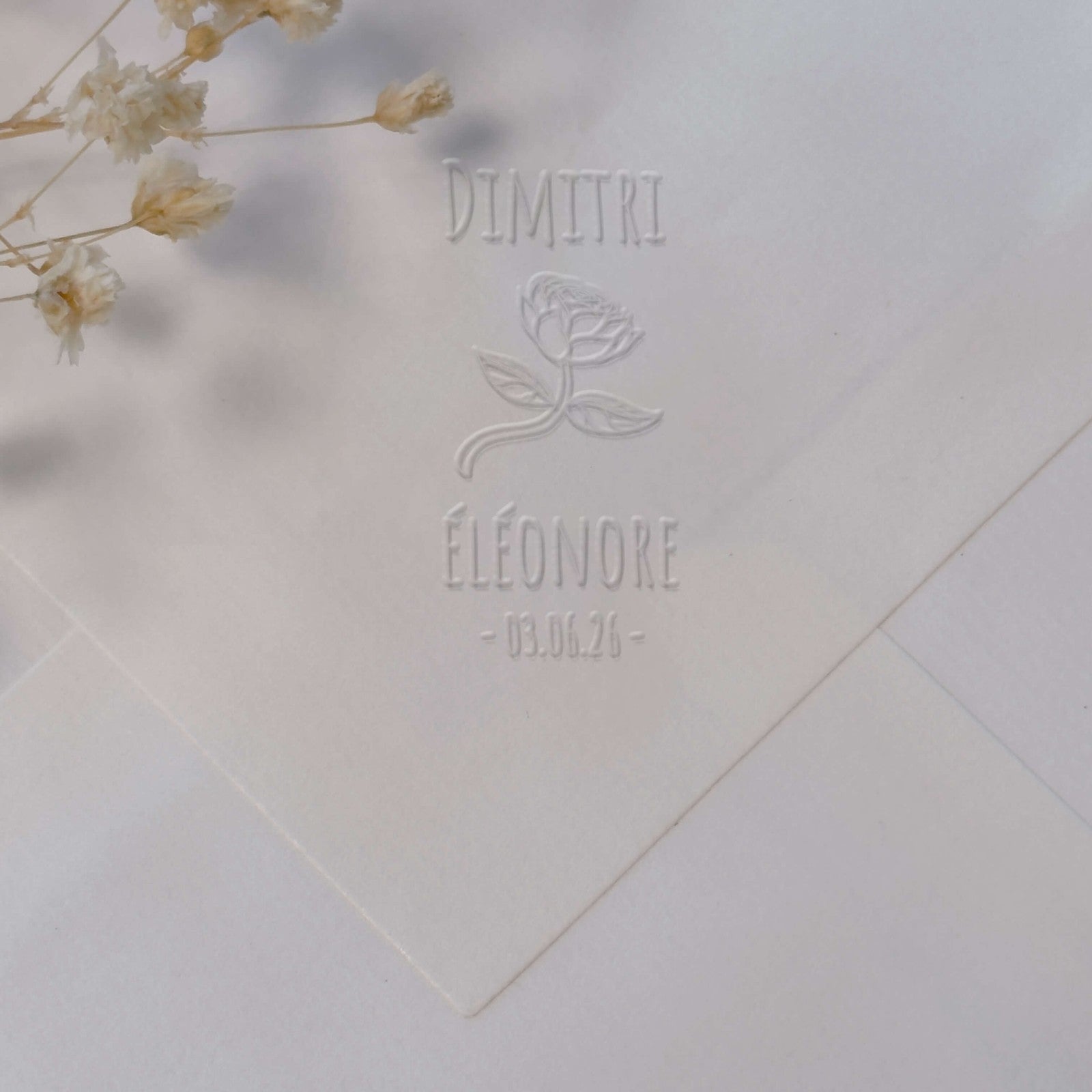Create an elegant dry imprint with this wedding embosser template featuring delicate and refined floral designs.