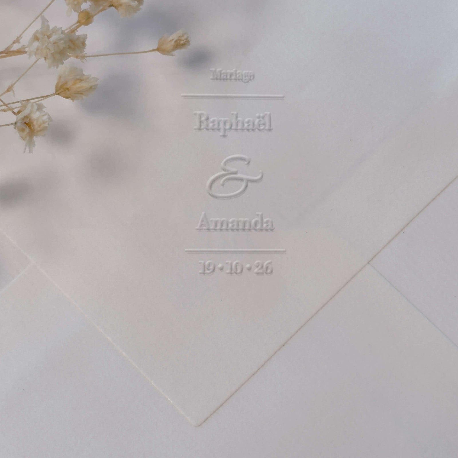 Create a refined embossing to celebrate your union with this minimalist and timeless wedding design template.