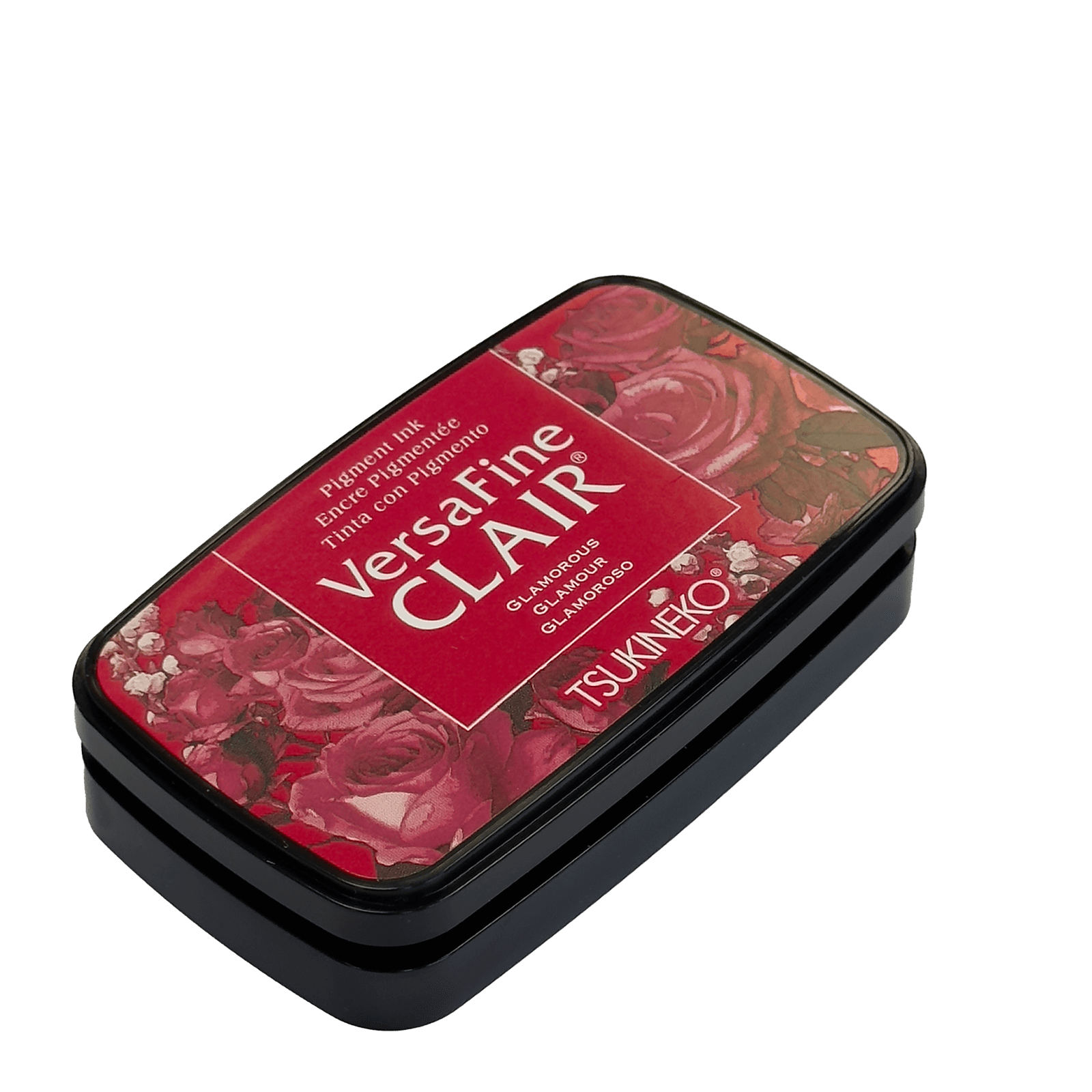 VersaFine CLEAR Glamour ink brings a vibrant red hue to your creations with a stylish rectangular ink pad adorned with roses.