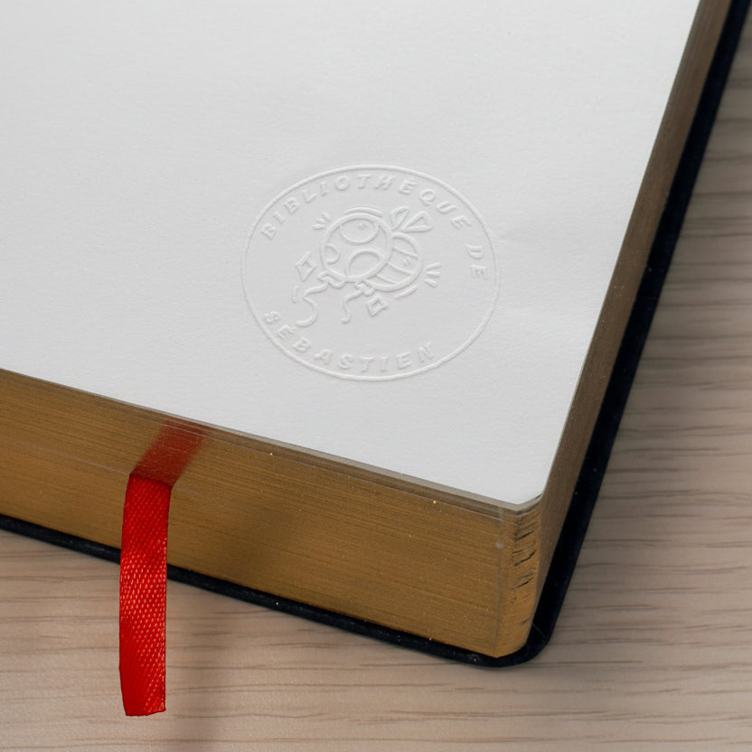 Imagine personalizing your books and documents with a unique and fun touch using our dry stamp design: Cartoon Balloon Bookplate. Ideal for book lovers and collectors, this stamp adds a touch of originality to every page marked as belonging to your personal library. This design features two balloons tied to a string, along with customizable text to include your name.