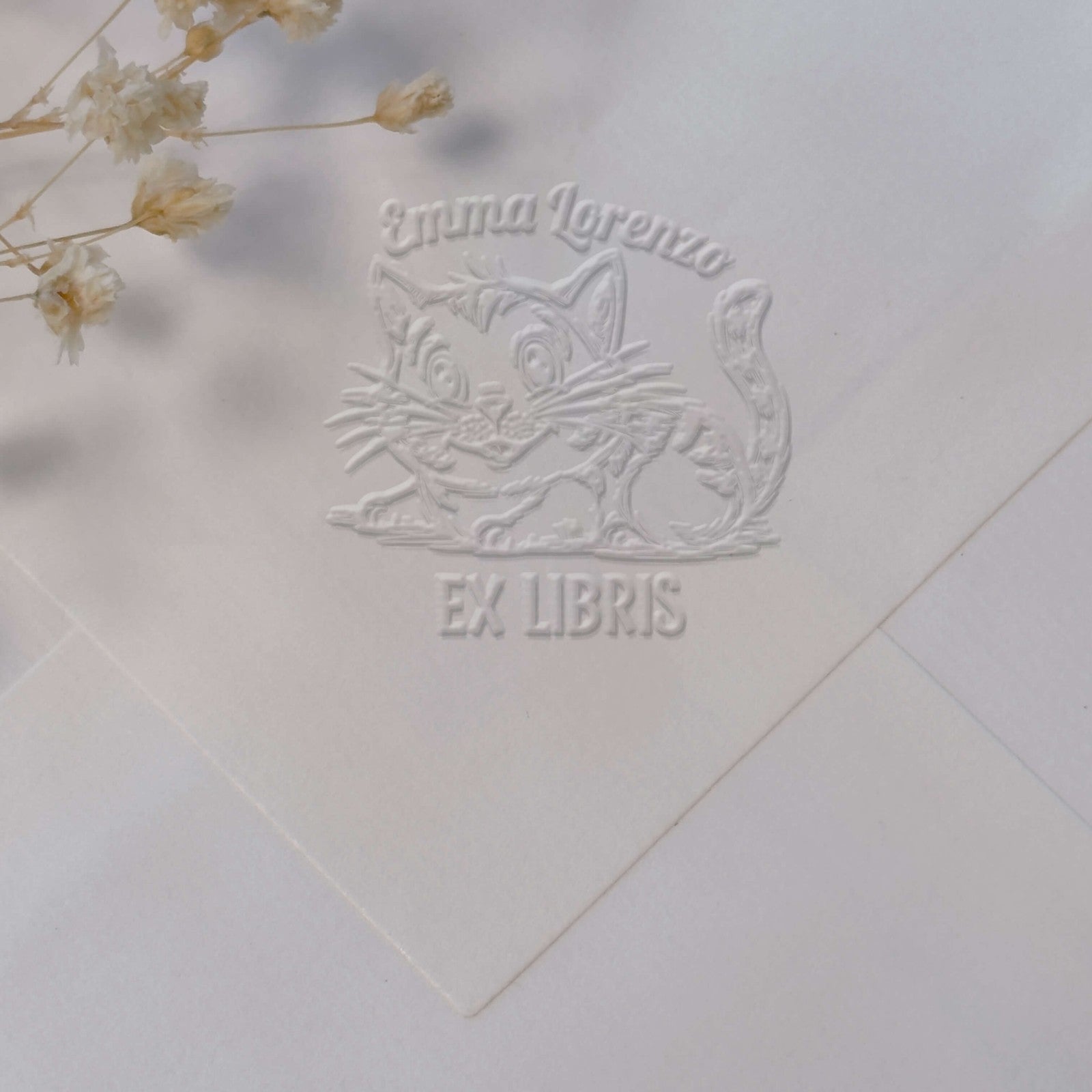 Create your own personalized bookplate with this refined cartoon-style tabby cat design, perfect for marking your books with a unique and elegant imprint.
