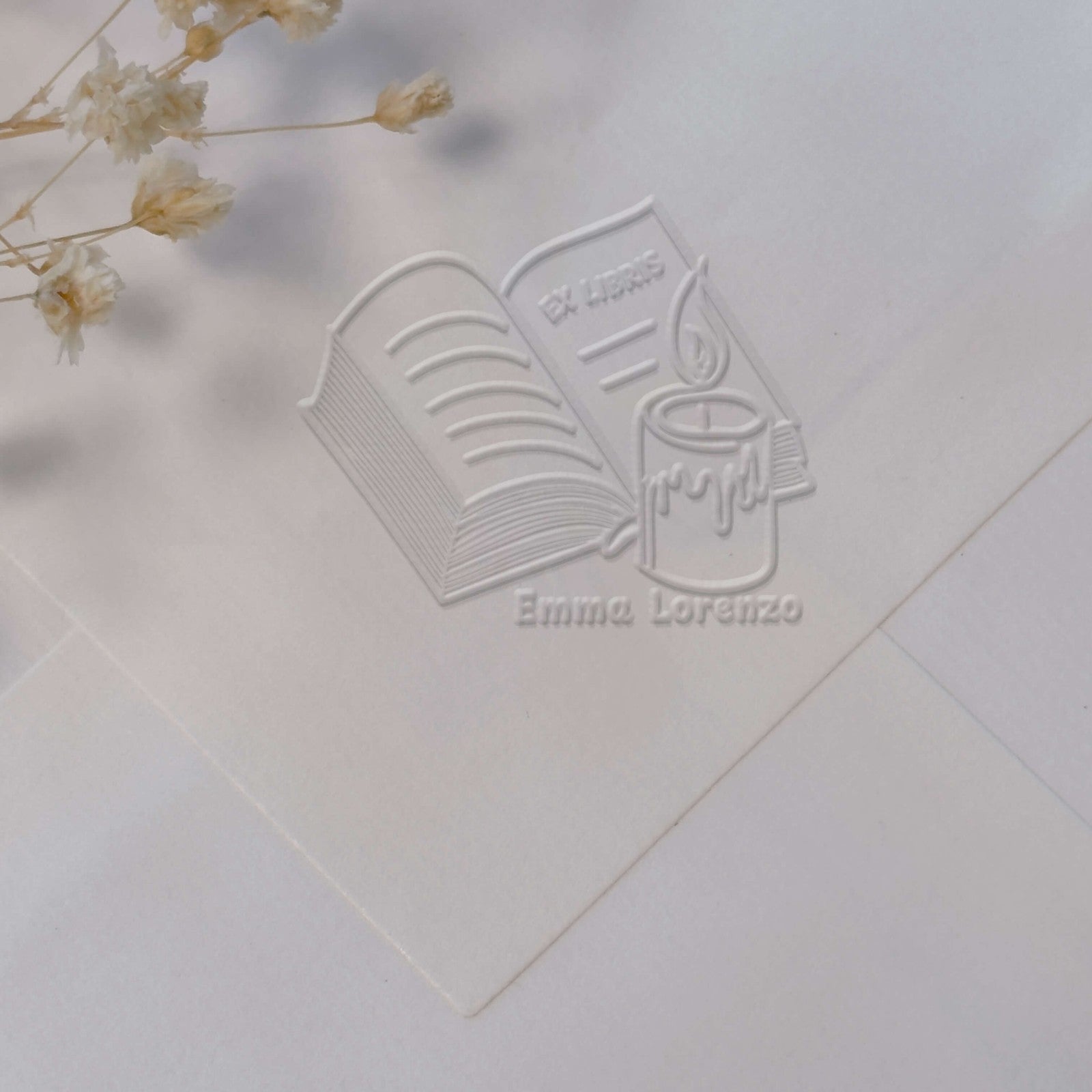 Create your own personalized bookplate with this authentic design depicting an open book illuminated by a candle, perfect for marking your books with a refined touch.