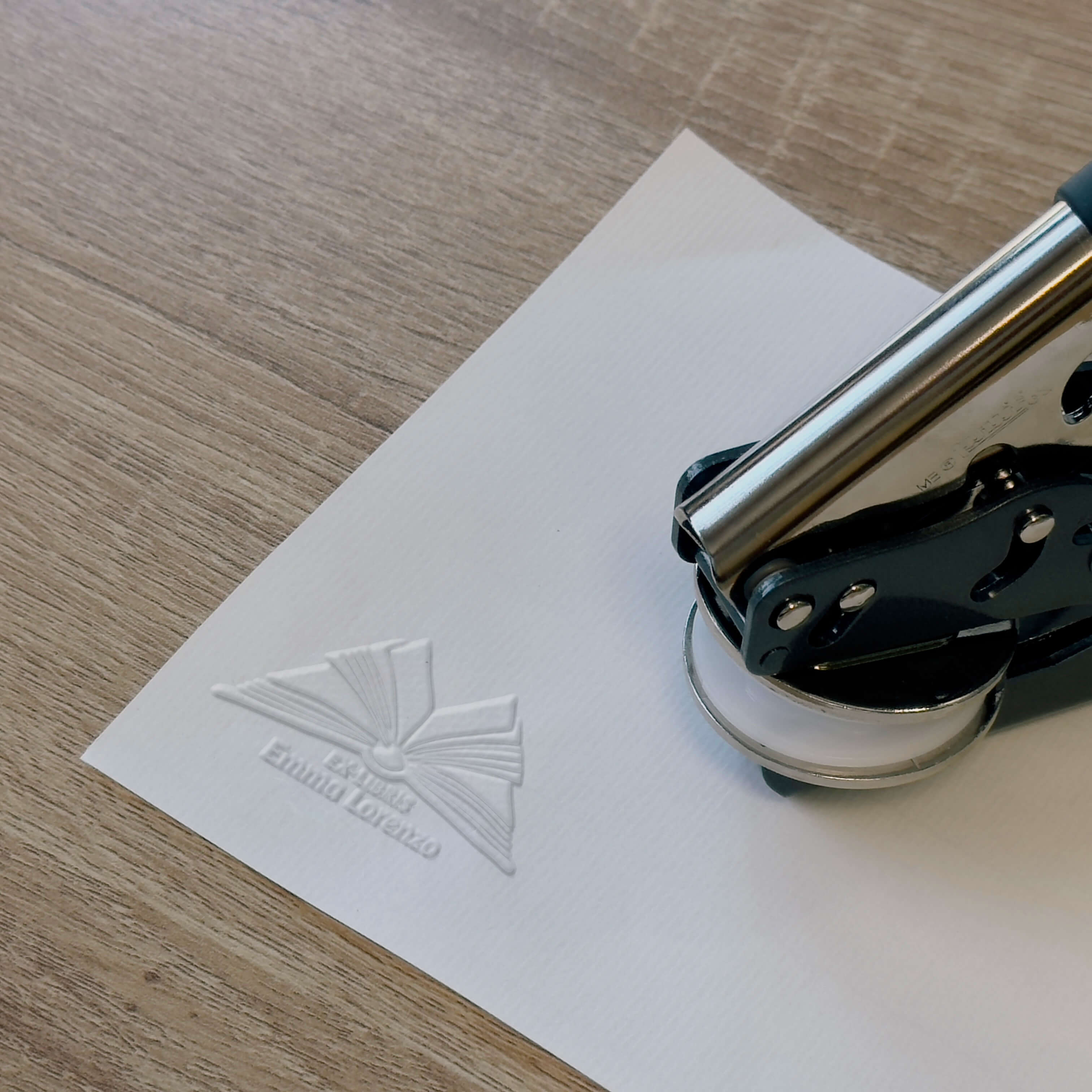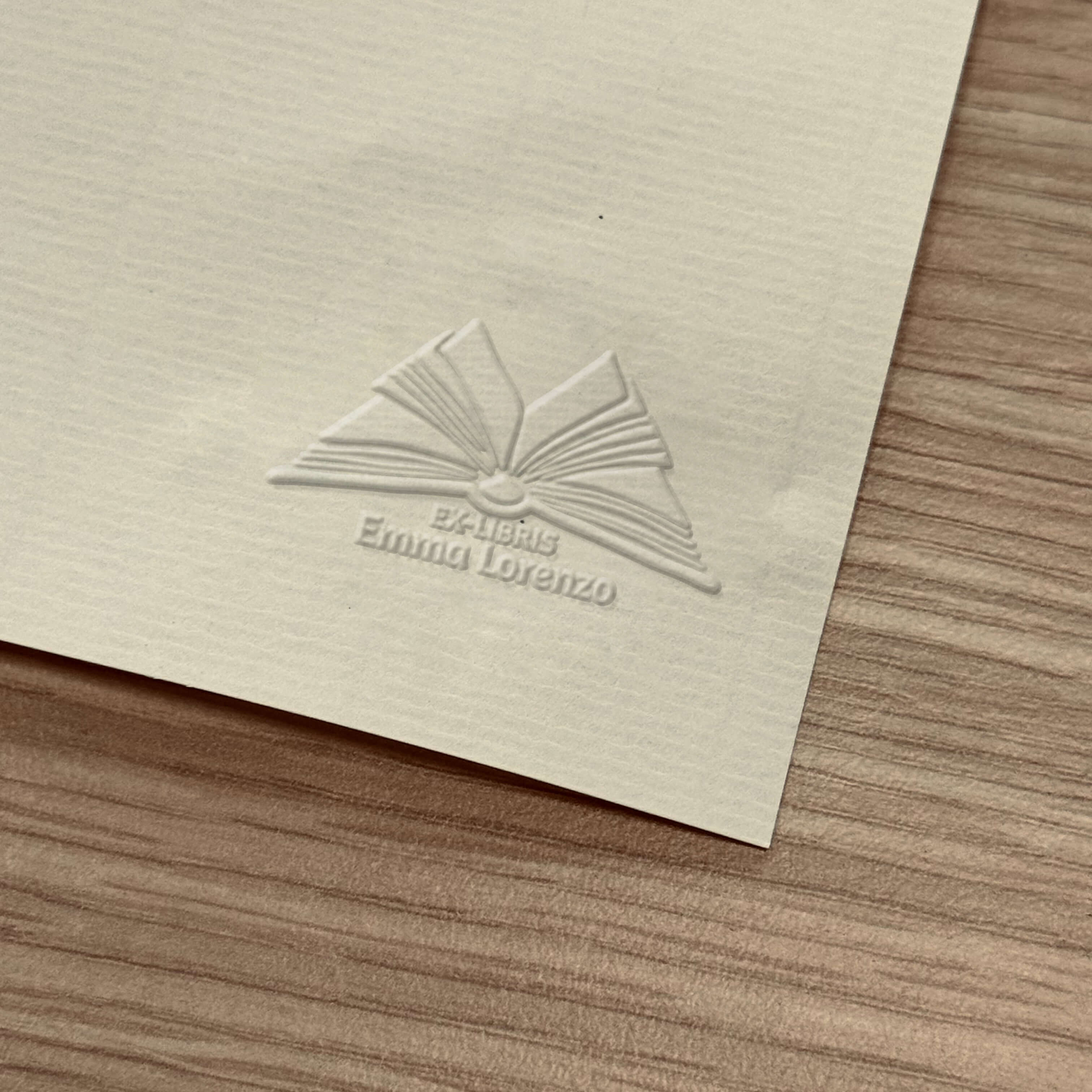Create a personalized and elegant bookplate with this open book design for your professional embossing brands.