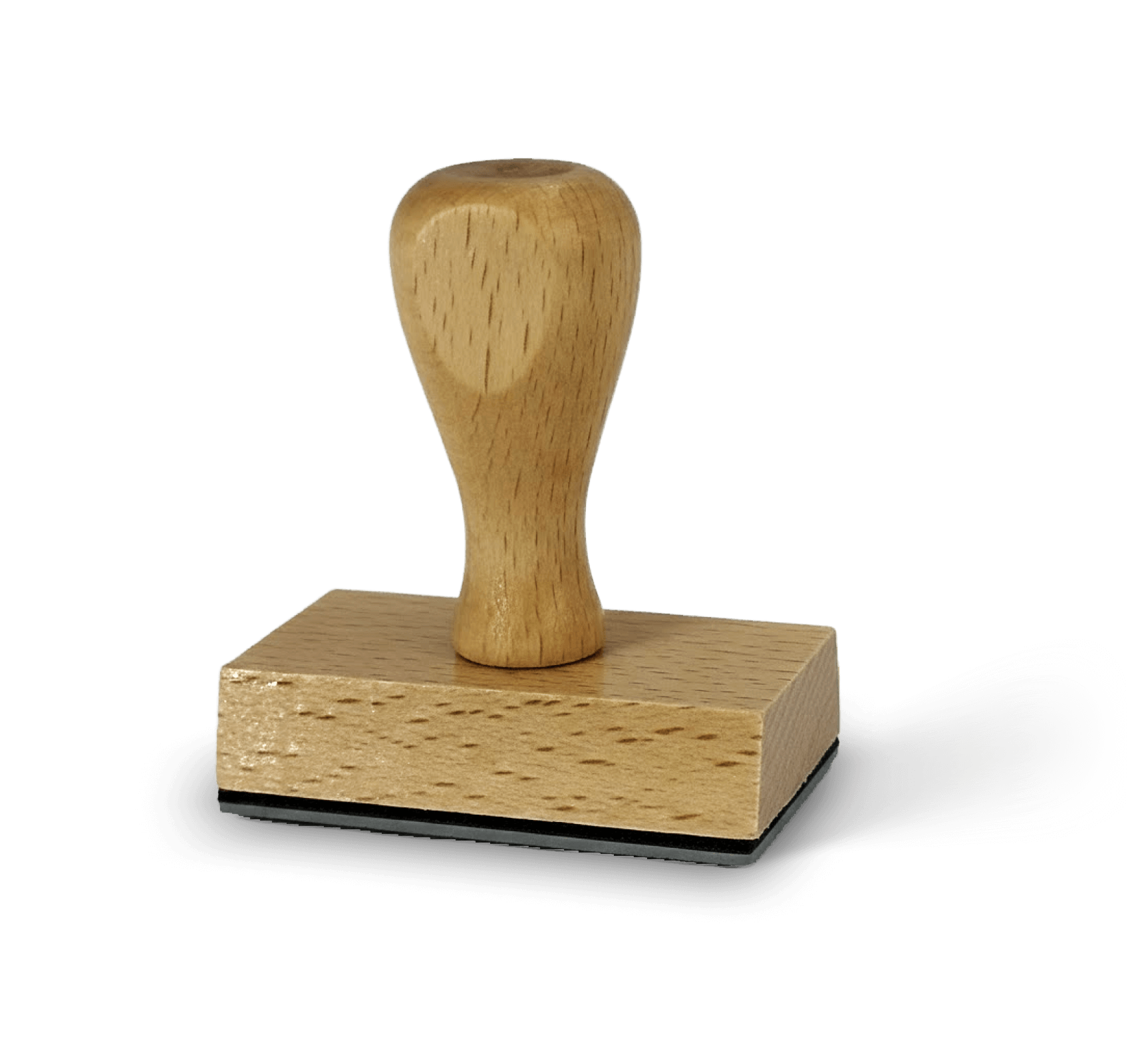This varnished natural wood stamp holder offers a comfortable grip thanks to its ergonomic domed handle and stable rectangular base.
