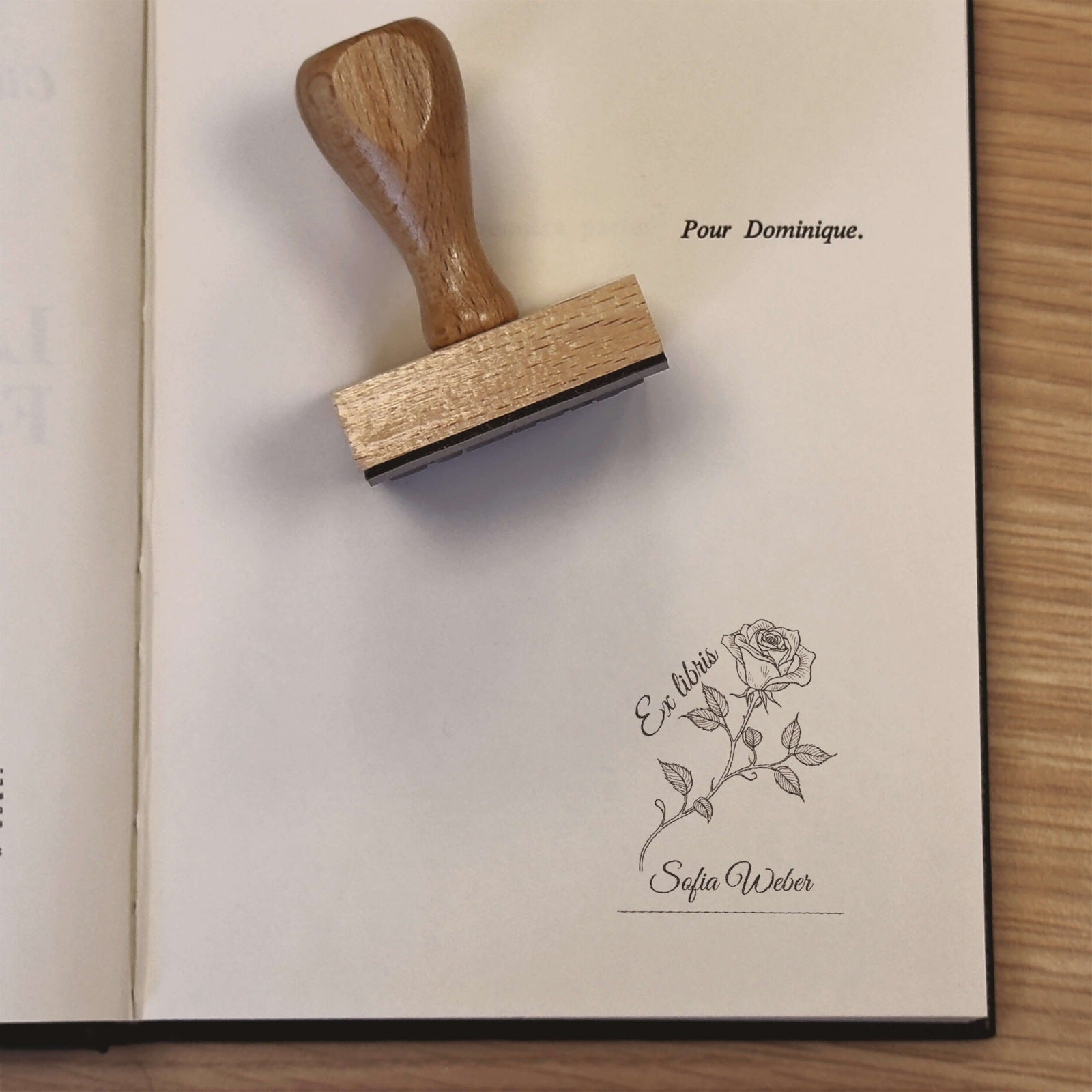 Create your personal signature with this elegant bookplate, adorned with a delicate rose drawn in fine lines and accompanied by your name in refined calligraphy.