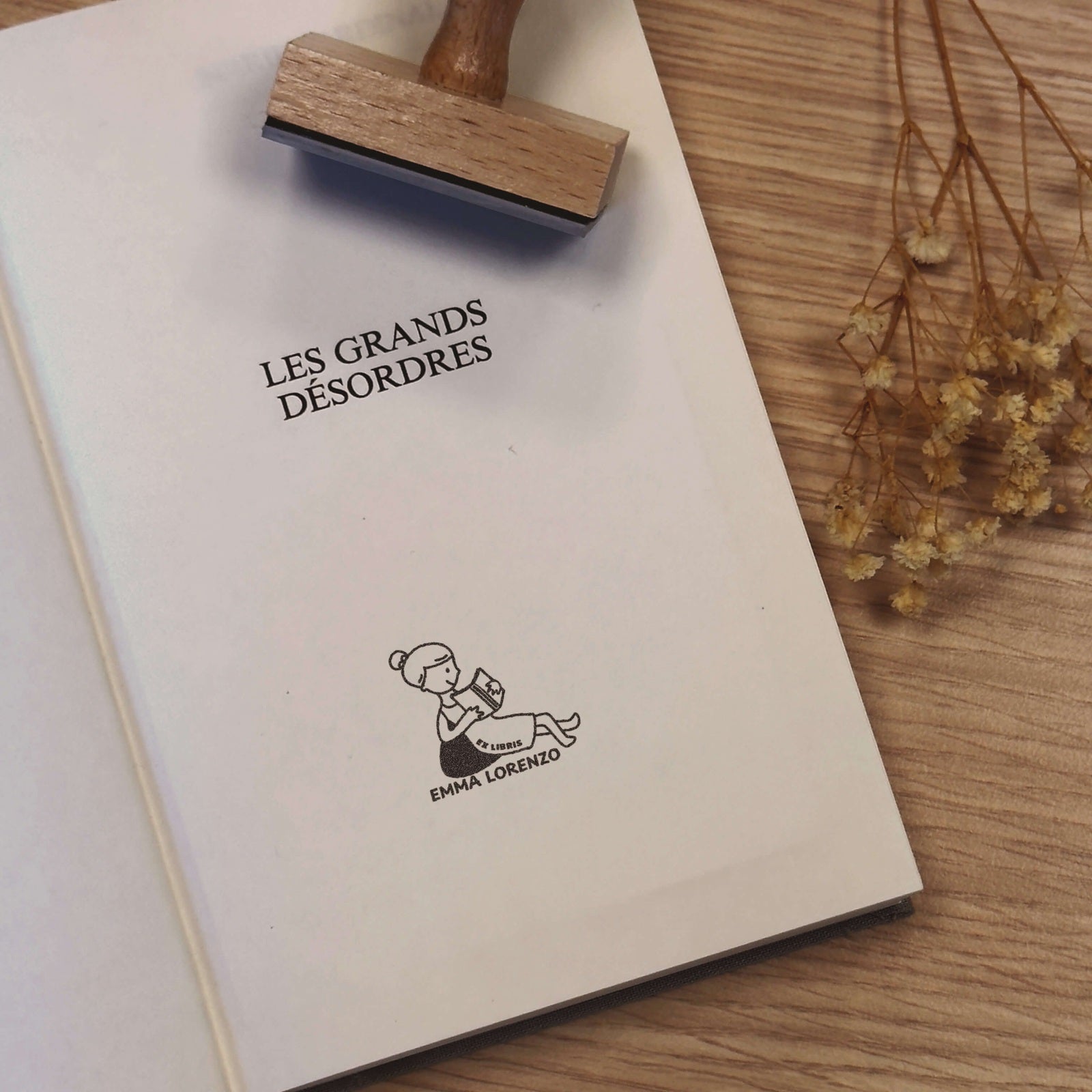 Personalize your library with this bookplate design featuring a silhouette of a reader engrossed in her reading.