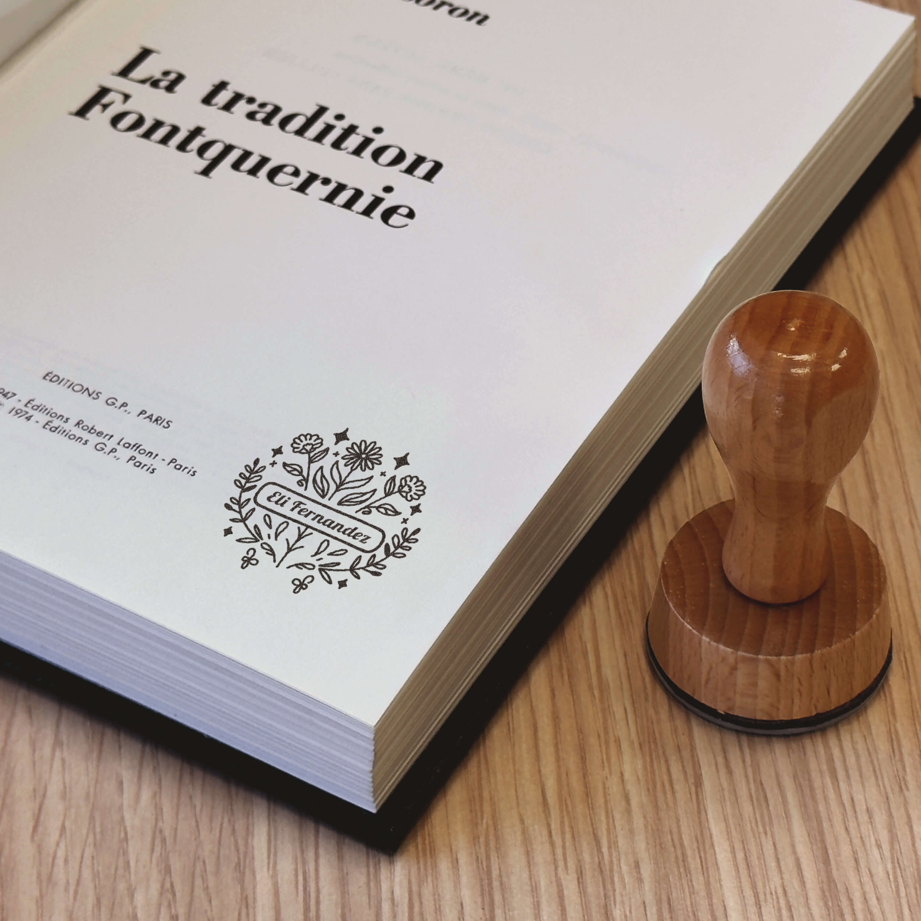 Create your own personalized bookplate with this delicate floral design inspired by herbariums, adorned with decorative stars in a rectangular frame with rounded corners.