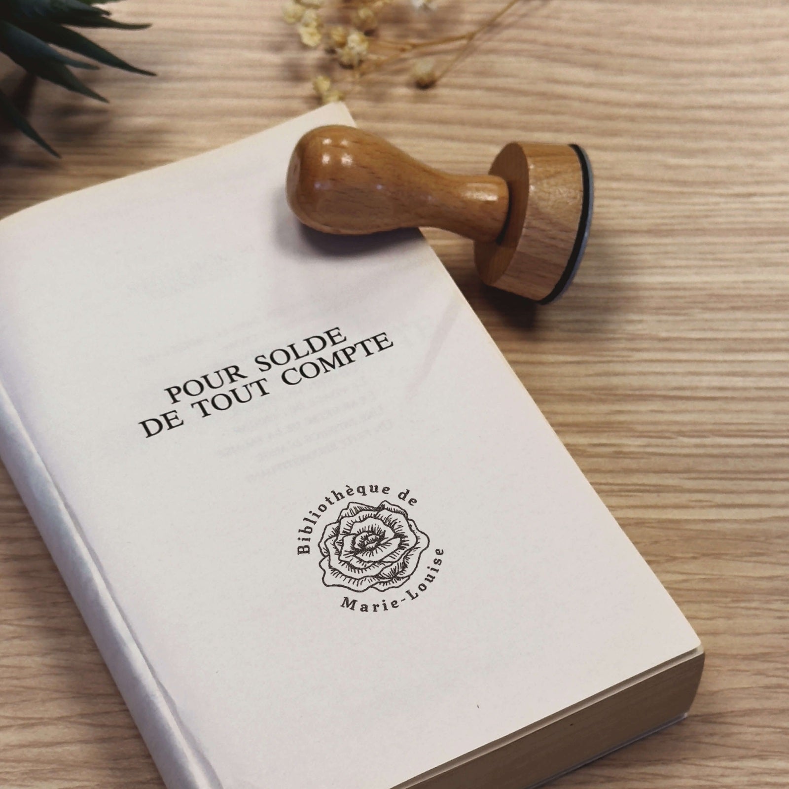 Personalize your books with this round bookplate adorned with an elegant engraved rose, ideal for marking your personal library.